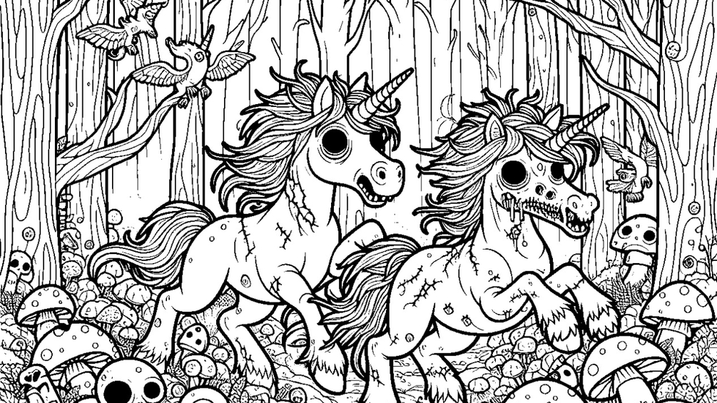 Evil unicorns and other nasty creatures. Perfect for horror fans and adult and teenage coloring enthusiasts, these chilling designs let you unleash your imagination and relax with detailed coloring.